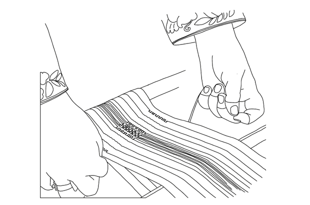 Talli is a traditional form of decorative embroidery practiced by Emirati women. Cotton or silk threads, intertwined with gold and silver threads are used to decorate the collars, sleeves and hems of the kandoora and thawb (traditional women’s robes) with intricate designs and vibrant colours.